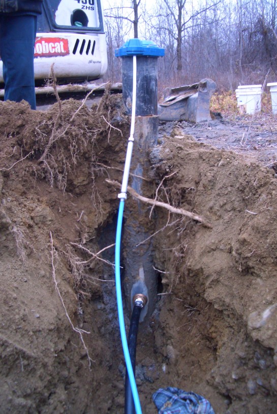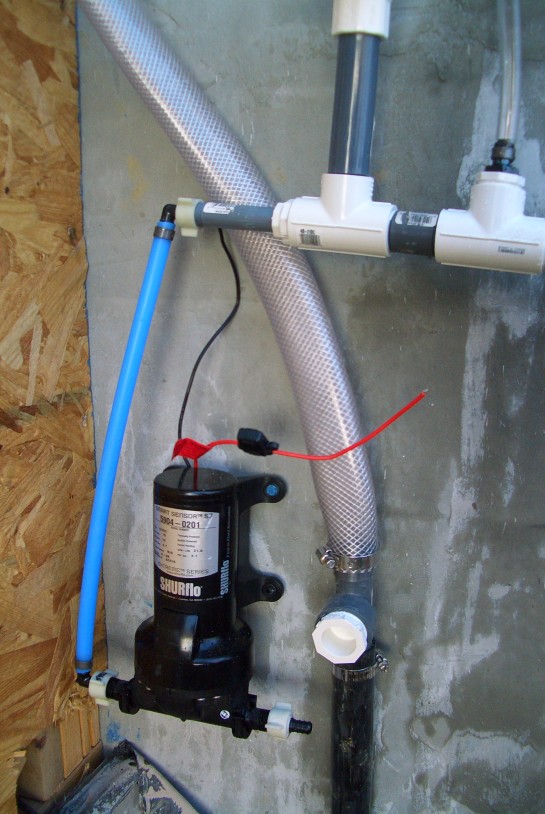 The water is pushed up another buried line that runs into a large 550 gallon tank that sits in the berm behind the house.