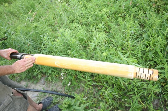 Then we insulated all sides with Reflectix and rigid foam insulation. At this point there are two copper coils in the tank. One, a closed loop from the generator to the tank. And a second from the tank to the house domestic water. The final system will have a third loop coming from the solar water tubes.