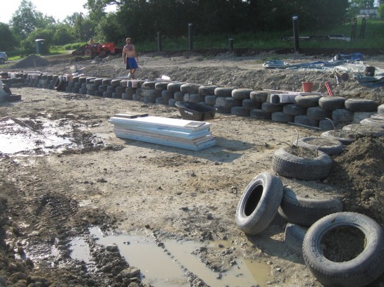 Our friends and neighbors, Chad and Courtney, are definitely feeling “tired” as they gear up and pound dirt in salvaged tires that will make up the walls of their Earthship home. A man named Mike Reynolds began developing the Earthship idea in the 1970s. Since then, the idea has been taking off around the world. His books actually inspired the Dacha Project many years ago and the Dacha crew has adopted a variety of Earthship principles in the building of our off-grid home. We are honored to welcome Mike and the Earthship builders to Freeville to help Chad and Courtney construct their dream home! To find out more on their progress, check out their website: http://freevilleearthship.blogspot.com/