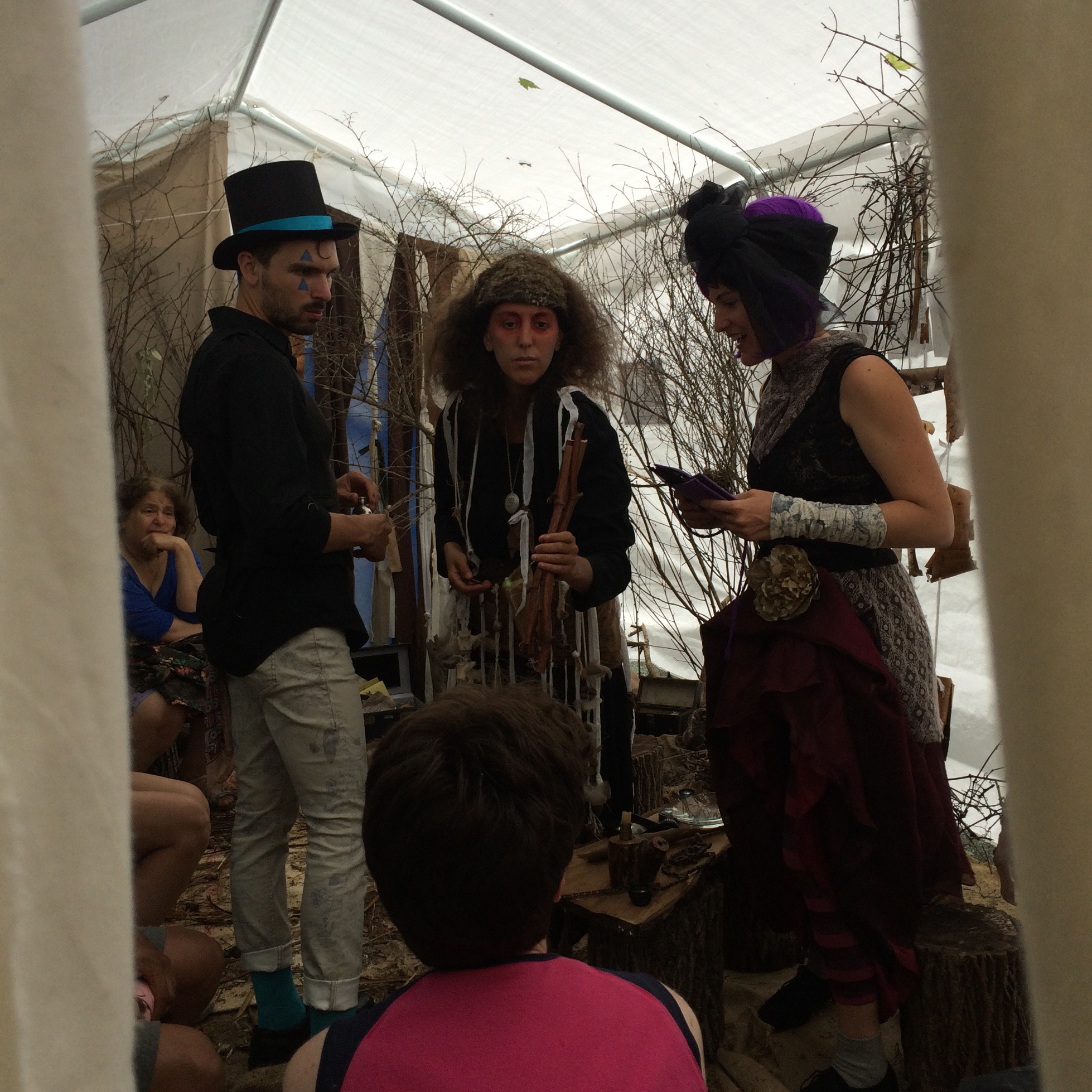 Well, despite the rain, we were able to try out our experimental, interactive bit of theater @ Ithaca Festival 2016. It was our first attempt at this type of performance art and we learned a lot. Our favorite part was collaborating with Art Club - amazing! There may be another round of I Sense a Presence coming up, and we will certainly keep working on more art in this vein. If you’d like to know what we’re up to join our mailing list: